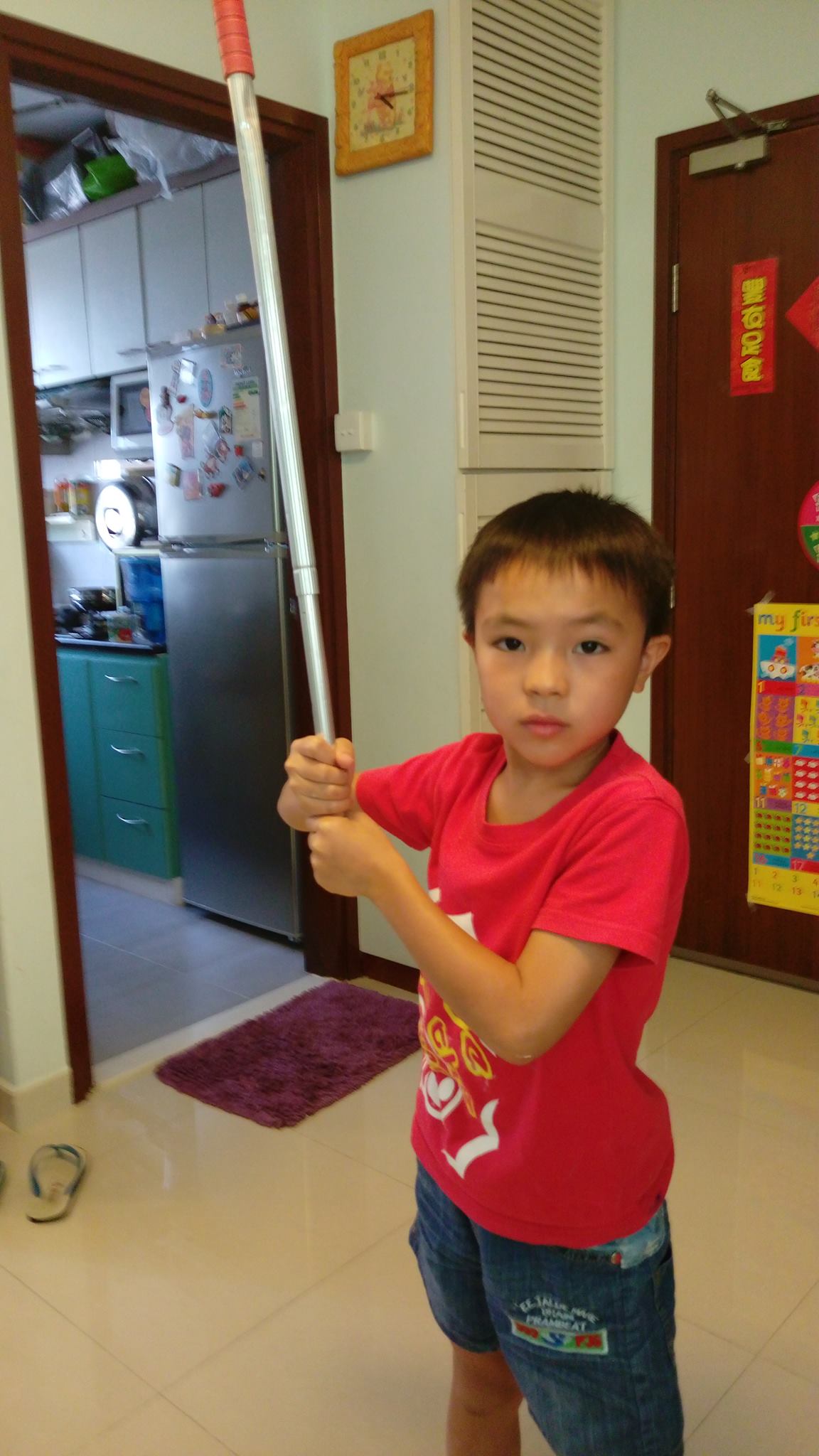 父子二人在影碟買回來不久就旋即看完第一集,兒子立時已經滿口Jedi、Jarjar Bink、Skywalker、Anakin、Obi Wan,不過他最感興趣的東西與當年的我一樣(相信大部份人也是如此),就是電影裡的激光劍。在電影看完之後,兒子已急不及待在家裡找激光劍,但我家又何來激光劍呢?結果他就取了曬衫用的叉,還要拆去叉頭,然後再上下倒置雙手握劍,實在很是認真!